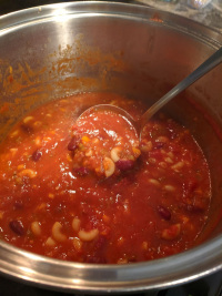Stir in diced and crushed tomatoes and chicken broth to the pot and bring to a boil. Reduce heat to medium-low and simmer 10 minutes. Stir in kidney beans and pasta. Cook until pasta and vegetables are tender, about 10 minutes. Ladle into bowls and top with the parmesan and chopped basil.