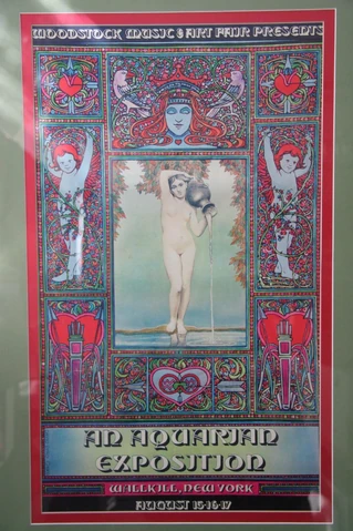 Notice the posters have different locations for the festival. That’s because the Woodstock organizers, had some issues with the locations they choice. Originally they wanted the venue to be near take place in Woodstock, NY. After residents opposed them, they thought they’d found a second location in Saugerties, NY. That, too, fell through. Another search brought them to the town of Wallkill, NY. But then the town board passed a law that required a permit for an assembly of more than 5,000 people. The estimated attendance the organizers were tell authorities was about 5,000, but in reality they expected 150,000 to show up. The organizers of the concert applied for the permit but ended up being turned down because the number of portable toilets were deemed to be inadequate. A dairy farmer, named Max Yasgur, heard about the festival and the problems the organizers were encountering and he offered his dairy farm, in the town of Bethel, near White Lake, NY, as an alternative site.