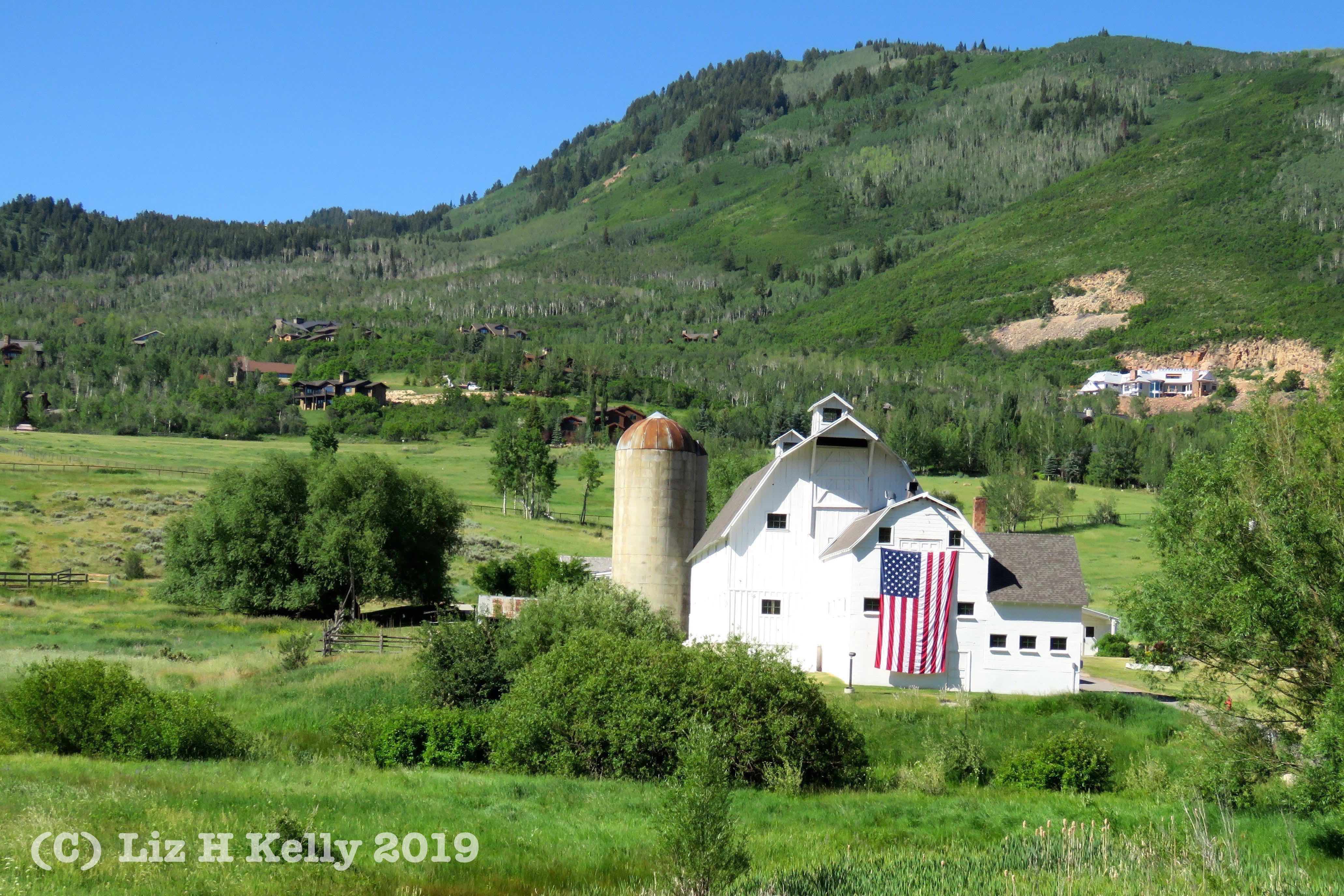 7. Take Photos of Landmarks with Personality – Photo in Park City, Utah – Look for landmarks that are decorated to give your photo more personality. For example, this historic barn is on the main road into Park City, Utah, and is a welcoming sign to many who visit. During this drive-by, it had an American flag for the 4thof July holiday. Notice that the barn is also off to the side, which opens up the photo more.