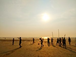 Cox’s Bazar. Boys playing Football at Inanni Sea Beach