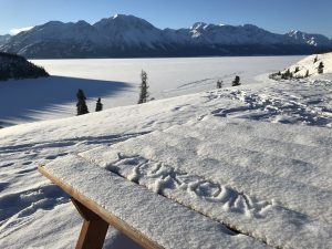 Further immersing us into this pristine area, our final day was with James Allen, a former Chief of the Champagne and Aishihik First Nations, who guided us to Shakat Tun Wilderness Camp (once again via snowmobile) for ice fishing, a trapline tour and a traditional meal of stew and bannock (of course).
