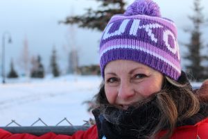 Winter attire is mandatory for the Yukon, as Cynthia is dressed.