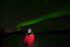 Cynthia and the Northern Lights. Photo by Arctic Range Adventure.