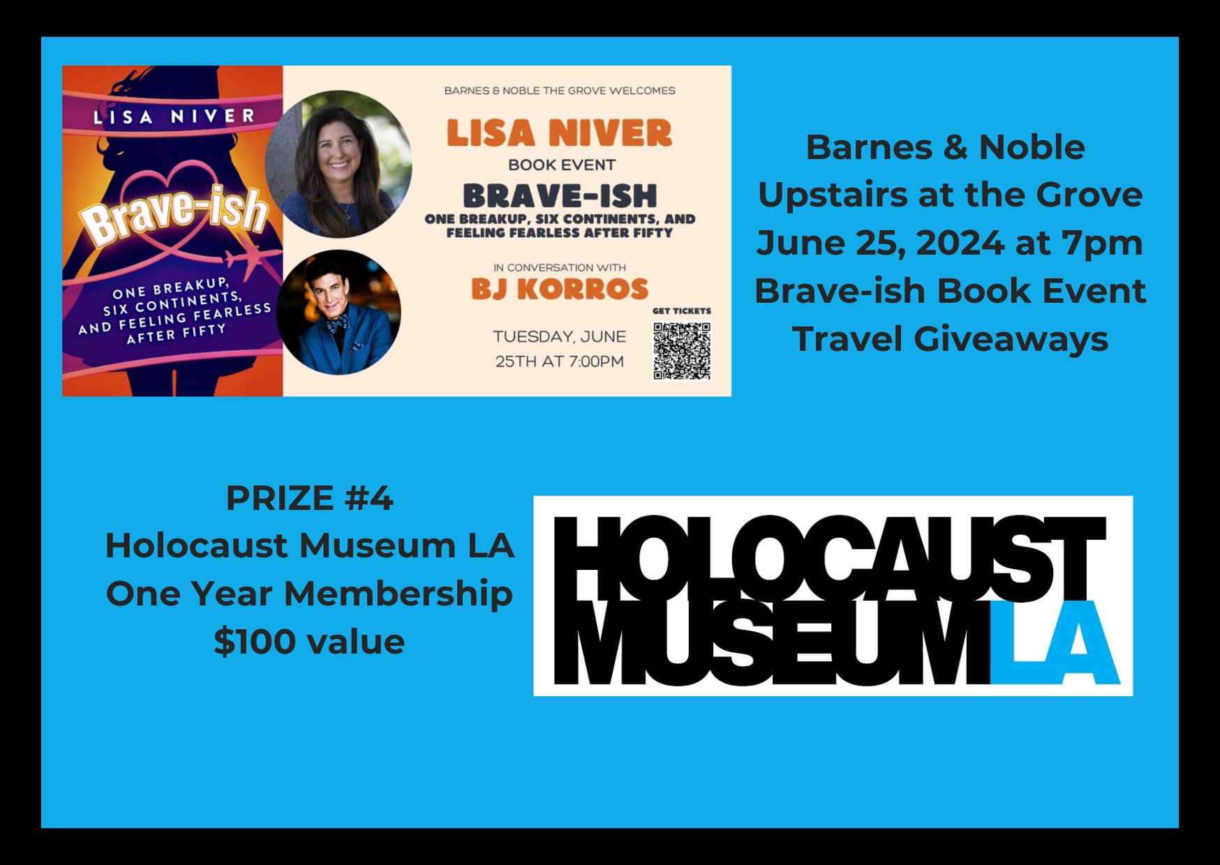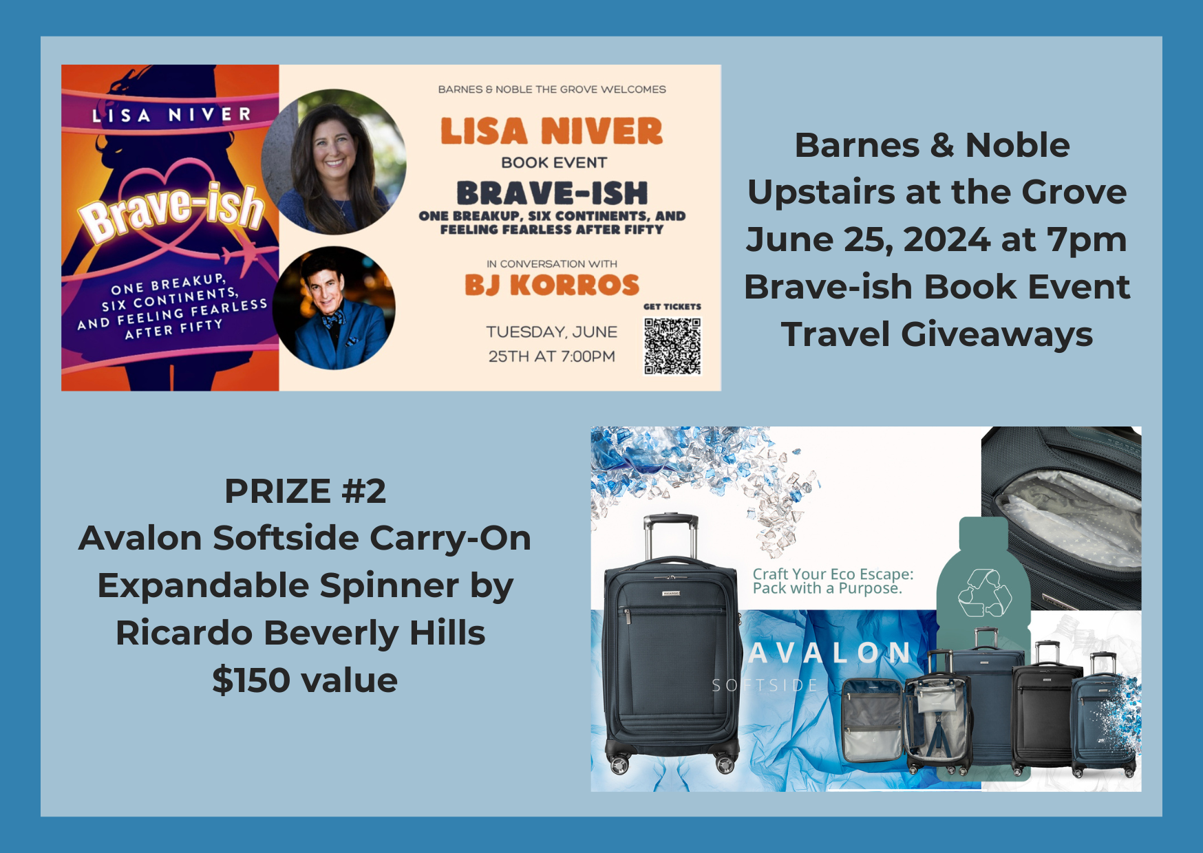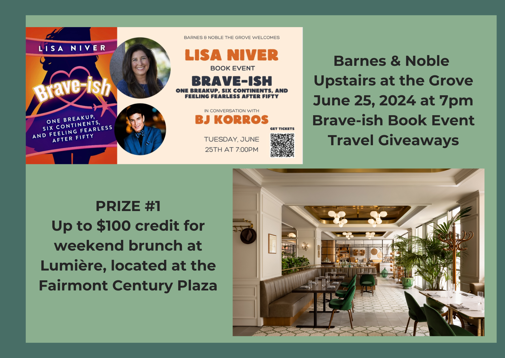 Join Barnes & Noble – The Grove at Farmers Market on June 25, 2024, as we welcome award-winning travel expert Lisa Niver to discuss and sign BRAVE-ISH: ONE BREAKUP, SIX CONTINENTS, AND FEELING FEARLESS AFTER FIFTY, the breakout memoir that Forbes rated as Best New Nonfiction inspires readers to dream big, take risks, and embrace the unknown to create a life filled with wonder and excitement, even when courage seems elusive.