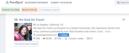 Thank you to Feedspot for naming my site, We Said Go Travel, #10 on the 100 Best Travel Lifestyle Blogs and websites for 2024. I am honored to be included among these amazing content creators.