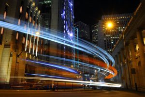 I captured this city night shot by Nikon D700 with nikkor 28-70mm. I used a ND filter to extend the exposure time in f22 to get the longer traffic light trail. Adjust the contrast and brightness in photoshop element