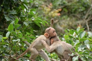 I was just trying to capture some good images between the animals, showing the love in between them. At that time only I suddenly sow these monkey babies ,they were playing and having fun without caring of any body else. so at that time I took my camera and clicked some beautiful images of them. This is one among them.