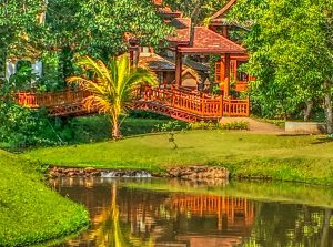 On a trip to Chang Mai Thailand I landed at Suan Bua Resort and was walking around admiring the beauty of the landscape when I saw this beautiful red teak house and bridge and so I had my IPhone SE with me and took the picture of the moment. Left my Canon T1i DLSR at the hotel but fond that my new IPhone took great pictures as well. I did some editing on my computer using Adobe Photoshop CS5 software for HDR photos.