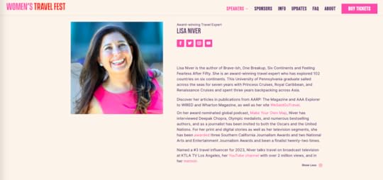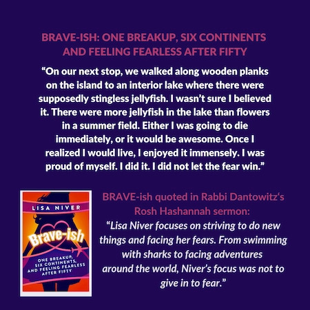 Learn more about LISA and We Said Go Travel: Meet me at one of my upcoming events in Chicago, Mexico or Utah, read my award winning memoir, Brave-ish: One Breakup, Six Continents and Feeling Fearless After Fifty, listen to my award winning podcast, Make Your Own Map. Watch my videos on YouTube where I have over two million views. Find me on social media at @LisaNiver. Thank you for all of your support.