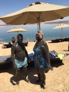 “Did you go down to the shore and get the mud pack?” I asked the pair, describing our experience with enthusiasm.