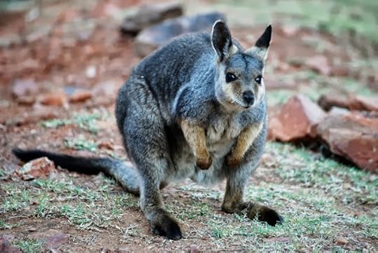 This inquisitive, endangered female is a black footed rock wallaby. You can easily view these guys and gals at Heavitree Gap campground and resort in Alice Springs.