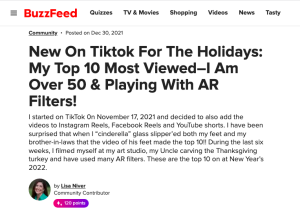BUZZFEED: New On Tiktok For The Holidays: My Top 10 Most Viewed–Over 50 & Playing With AR Filters!