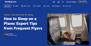 Thank you Booking.com for publishing my article, “How to Sleep on a Plane: Expert Tips from Frequent Flyers