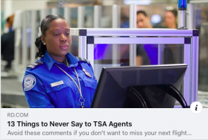 Thank you to Lindsay Tigar for including me in her Reader’s Digest article: “13 Things to Never Say to TSA Agents.”