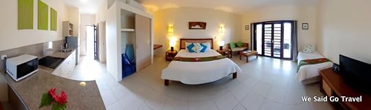 They have rooms for families, dorms and space for your wedding. There is wreck diving, colorful color and you might see white tip reef sharks. It is close enough to town that you can easily go by bus but at night it feels like you are far away on your private island. I loved the view down to Hideaway Island from the Jungle Zipline!