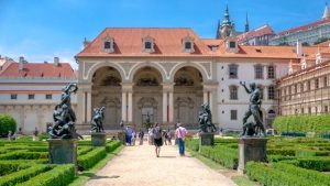 My day in Prague started with a visit to the Prague Castle, and a highlight for me was the Waldstein Garden, with gorgeous fountains, sculptures, and rare albino male and female peacocks. I visited when there was a hot spell, so I had to search under the bushes in the shade to find them. The Czech Republic Senate building is adjacent to the gardens, and the streets are lined with a local favorite tree called Linden tree, which is beautifully fragrant and used to create many perfumes.