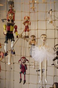 Afterwards, we headed off to find local crafts in other areas of the city. Famous for its artisan glass, be sure and see was the Artel store where there was an interesting mix of horse images etched into scotch glasses and the Prague skyline etched into drinking cups. Artwork of dogs and cats in regal outfits and poses graced the walls. Not to be missed, right next door was a puppet and marionette store called Marionety where Don Quixote, friendly teddy bears, dragons, and wooded children faces dangled from the ceiling. Hand puppets lined the store front window.
