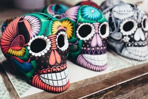 It’s when catrinas and catrins fill the streets, the faces of locals and visitors alike painted like skeletons; when entire markets dedicated to sugar skulls pop up in church-adjacent walkways; when brilliant orange marigolds are purchased by the wheelbarrow rather than the bouquet to decorate every surface, to line every doorway. It’s when we the living call on the dead to come back and play, even if for just one night, one drink, one dance.