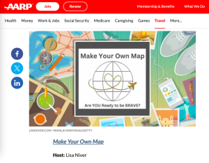 NEW PRESS INTERVIEWS:AARP logo Make Your Own Map Podcast Featured In AARP’s “7 Travel Podcasts You Can Listen To While Waiting In The Airport”