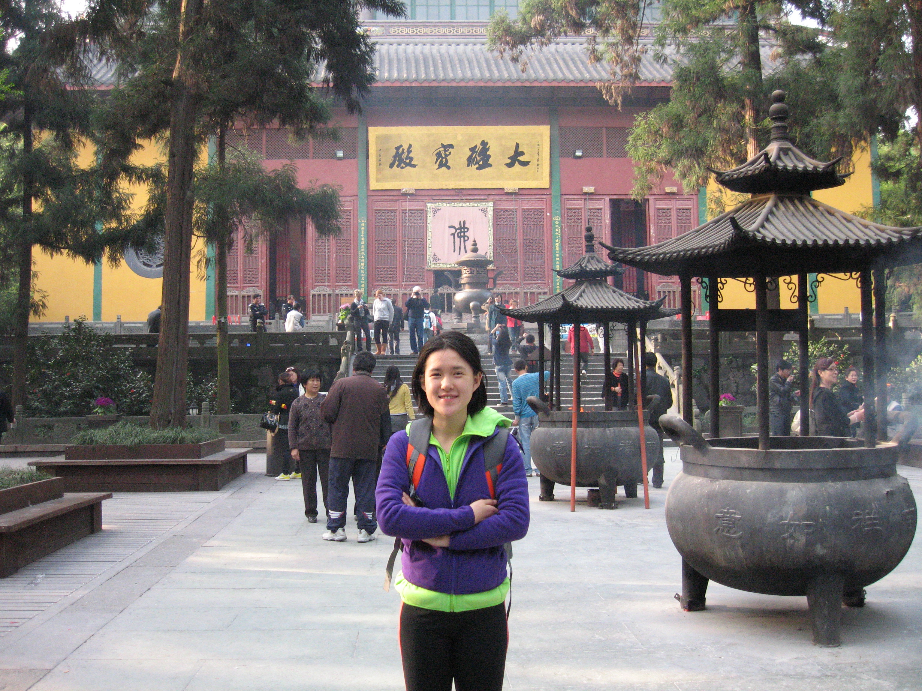 After my descent, I rejoin Dad in the main courtyard, a space lined with tall pine trees and iron incense alters – large vats weighted by sand and adorned with burning incense that permeates the yard with smoke. People stream into and out of the temple; a single word “Buddha” hangs on pink parchment, blessing travelers and reminding them of the religion’s purpose. Though I am not Buddhist, I swing my legs over the high entrance barrier into the temple’s main hall, stare at the golden statues reposed in meditation, close my eyes and take deep breaths. As I enjoy the air flowing through my lungs – the same air that grandfather could no longer lift his chest to take in – I start praying softly and earnestly ‘may my family be well, may my family be well.’ Dad does the same and we both find some strength to face the future.