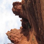 Sun warm and shining bright over the middle of the day, the red rock is rich and vibrant against the blue sky. Our group of four climbs up slowly, places our feet onto a small ledge, pulls ourselves up with some fingers wrapped around a protruding edge of rock. I look up the rock face towards our final destination and it starts.