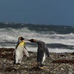 King penguins huddle together or walk against the wind. Their sea-evolved feathers and thick fat-layers push back against them so you see each detail of their figures. Occasionally one leans back to its partner to cross bills against the backdrop of a sea rising up with impending violence. Despite the cold I stay till the afternoon.