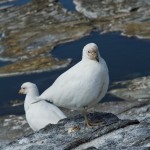These cliff tops, on the eastern side of Sea Lion Island, hold thousands of imperial shags that commute between strong seas and flat ledges. An hour ago I was stood with them taking photographs as they left the ledge flying just a metre or so above my head. Between the shags several snowy sheathbills waddle by. As I watch them I can’t help thinking that these white feathered birds are poorly named, a more literal label would have them known as the filthy muckpeckers. They shuffle between the shags jabbing the final nutrients from green fish-laced faeces.