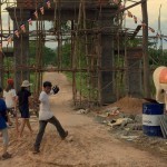 The next morning, we are prepped as we head out to the local school. This is what we came here for; we have some rebuilding work to do- teacher housing and a water tower. What we are not ready for is the pit in the middle of the school grounds; Two bamboo poles rigged together in a makeshift ladder leading down to the pea green pool. This is where we are collect water for the cement. Han smiles as he tells us this is also where the children scramble up and down at breaks to drink. This is, after all, what they have. Suddenly the water tower is not just a project: we are changing maybe even saving lives.