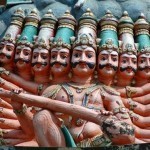 Luckily the next morning was the day of Dasseraha (a unique festival celebrate in Indian on women power which for ten days) the only day when one can see the temple opened for worship. That night I was thinking and dreaming about the story of Ramayana and its hero and villain. Why did they create ideas like this? For whom? What was their intention? Why did they kill all the Shiva devotees or his disciples who were kings? Was it a real story, the Shiva-Vishnu conflict? I slept, anticipating the next Ravana morning. Hardly 15 minutes travel, we saw a small structure and an idol that resembled almost all the description mentioned in Ramayana. Ten heads and many hands. I was little upset when I saw this statue but I loved his thick mustache. Many devotees came from different part of the country to worship him.