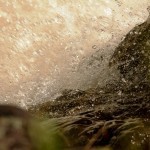 I clamber down the grassy flanks that have become terraced from sheep trails and soil creep. At the stream bed I clamber over moss-wet rocks and algae-laden boulders that are barely able to sustain a foothold, till I reach the foot of the waterfall. I find a place to sit and simply watch the water run downstream and away from me.