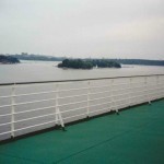 Not that we’d expected a luxury stateroom, but this was a rather dark and miniscule cube, mostly occupied already with the bunks at one end. The wet bath took up most of the rest, leaving a table and a couple square feet of floor. Now it was clear why the woman at the check-in desk had laughed when we’d asked for an extra mattress. Having loaded the bunks with all our luggage, one of us still had to stand in the bathroom in order to shut the hall door. The room was lit by a couple of dismal-looking lamps which did not help brighten the windowless, airless space.