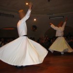 The Dervishes bowed to the empty hat on far side of the circular stage, their tall hats (tombstones for the ego) seeming to defy gravity by staying on their heads when touched to the ground. According to our guide, the bow was to honor Mevlânâ, their thirteenth century spiritual leader. Mevlânâ, creator of the Whirling Dervishes, was said to have whirled for two full days. It was his belief that the fundamental condition of existence was to revolve. He knew the world to be made of revolving atoms, knew that blood revolved within the bodies of men and animals and understood the revolving nature of the planets and stars. His achievement was to acknowledge and embrace this feature of existence through an act of homage—whirling.