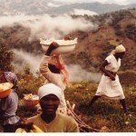 Once in Haiti, all along the road on the way to our resort I spied Haitians hauling children in makeshift carriers on their back, others bore colorful fruit in handmade baskets, while still others balanced massive sacks of what might have been flour or rice on their heads. Between the rows of tin shacks women were bent over in a single file washing clothes and pots in a stream. The smell of wood burning filled the air stinging my nostrils. It was their only fuel source for cooking.
