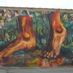 My hotel is clean and crisp and immediately I itch to get out of there. Dutifully, as a “tourist”, I head to the museum. Yes, to the one I sent Mr. Italy and Miss Slovakia to, but had never once set foot in. I’m one block away from Monet, next to the railroad-track-dump when I see it, a portrait of feet on the side of a building. It is just two feet, but precisely and intensely a person; going somewhere. It startles me. I get lost in the immobility of it, the story of it. There’s a fleeing in them. There’s also a freedom. Then I continue walking, right past the museum.