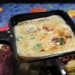 To my left is my husband, who has shared many cheese-based meals with me during our European travels together – smažený sýr (fried cheese) in the Czech Republic, baguettes with pungent Brie in France, manchego with quince paste in Spain, tagliatelle with creamy mascarpone and Parmigiano-Reggiano in Italy. To my right is Anouk, who has taught me so much about the simple pleasures of good food and wine. I have a plate of sliced cheese next to me, ready to be melted, and a glass of Swiss wine that tastes as fresh and clean as the mountain air. For once, I am exactly where I want to be.