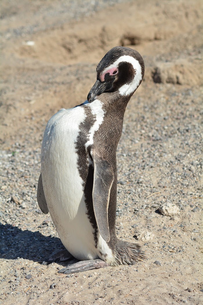 I walked down a sandy path wearing shorts and a t-shirt as I watched penguins lay in the sand seeking reprieve from the sun under the shade of scrub bushes. Travelling was dispelling the assumption penguins live only in cold climates. Lathered with gobs of sun screen, I walked along the dusty paths of Punta Tombo Reserve one hundred and ten kilometers south of Trelew, Argentina.