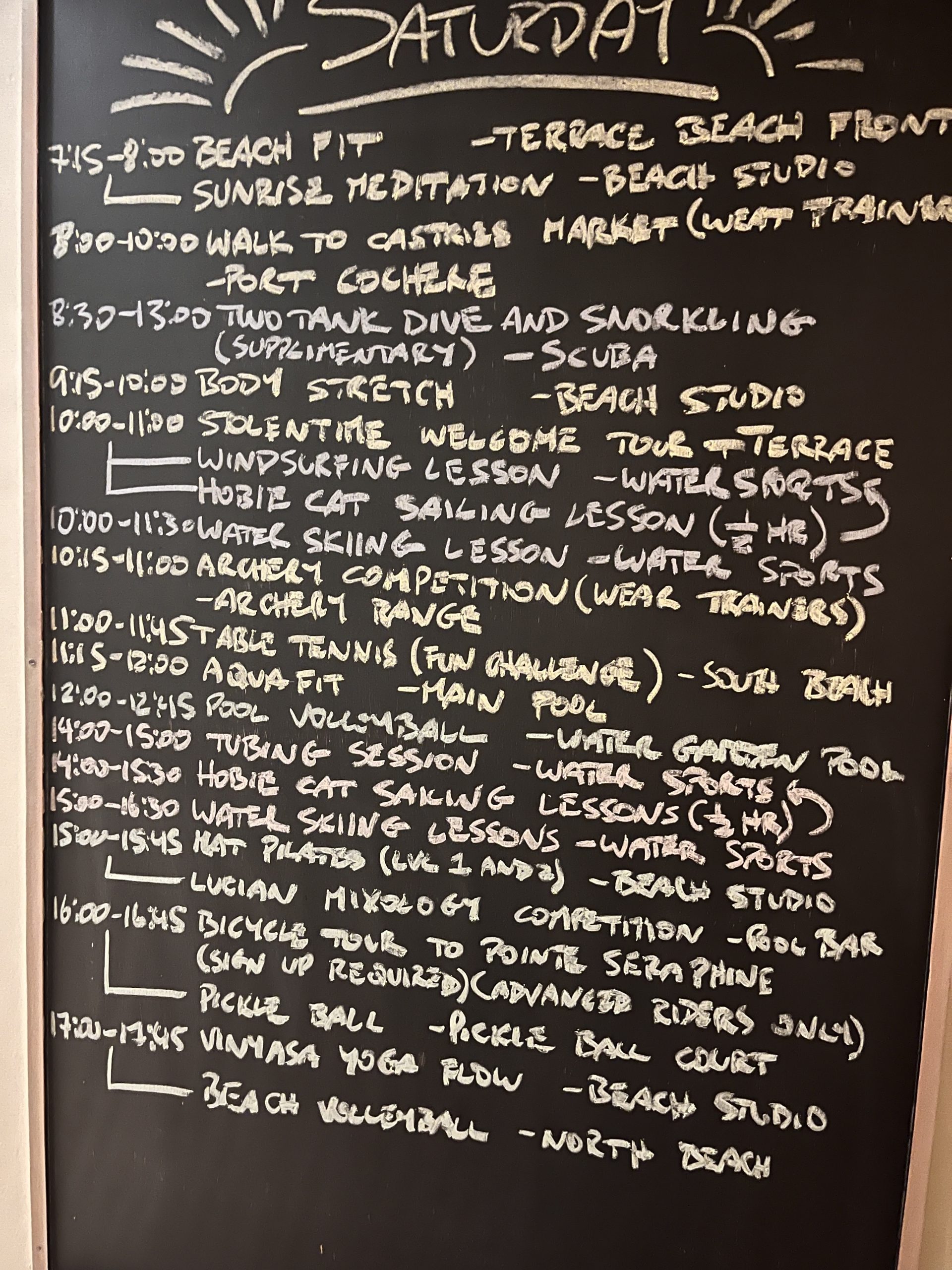 With a daily schedule of activities ranging from sunrise meditations on the beach to sip-and-paint classes to water skiing lessons to hikes to the Gros Piton, guests can choose to do as many activities as they want���or choose to do nothing at all but sit at the swim-up bar.