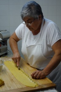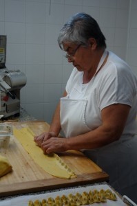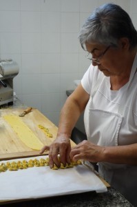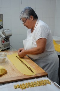 I Bologna – At the family restaurant of Braida Winery, we watched the chef’s mother make handmade agnolotti that were delicate and delicious and then enjoyed some of the tastiest desserts of the trip – coconut panna cotta with pineapple granita, crème brulee, hazelnut gelato and chocolate cakes, which all paired perfectly with Brachetto d’ Acqui.