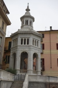 While Acqui Terme is in the heart of Piemont, Italy, surrounded by some of the most famous vineyards, Acqui Terme is also known for its hot sulpher springs. After all, the name “Acqui Terme” means “Thermal Waters.” The hot sulpher springs, which bubble up at 167°F, date back to the Roman town Aquae Statiellae. You can head into the center of town where the little pavilion known as La Bollente (“the boiling source”), designed by Giovanni Ceruti in 1870, is a central attraction to locals and visitors alike.