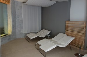 After three days of eating and drinking, we traveled across the to the other side of the river (only a few minutes from the center of Acqui Terme) to spend the afternoon at the Lago Delle Sorgenti Spa. Opened October 2010, this spa is more modern and new-age, compared to the older Grand Hotel. Set aside a few hours to spend here as the best treat is the 12-step “path” to relaxation.