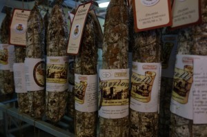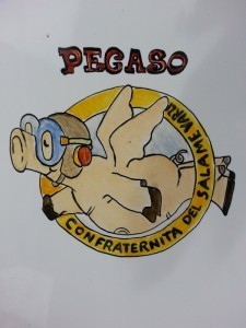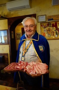 La Piola and the salumi factory is owned by Giorgio Perdoni, Grand Master of the Confraternity of Salame di Varzi. Salame di Varzi (salami from Varzi) DOP, dating back to the 13th century, is made exclusively with most valuable cuts of pork, such as the leg, shoulder, loin, coppa, and filet, with the addition of cheeks and bacon for the fat parts. The proportion of the various cuts is established in the production rules and is currently overseen by the Consorzio di Tutela (Consortium for the Protection of the Salame di Varzi DOP.) There are 85 members of the fraternity and to become a member, you must fill our a formal application and be approved. What do they look for in members? Foodies who enjoy life! Perhaps that’s you!