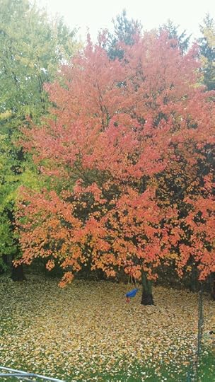 I've taken down the Halloween decorations and replaced them with Thanksgiving. The leaves on our tree turns yellow, then orange, and then a brilliant fuchsia, but a rain storm came along and most of that gorgeousness has frittered to the ground.