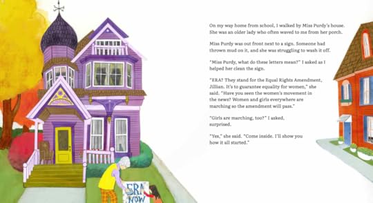Jillian’s neighbor, Mrs. Purdy, explains the Equal Rights Amendment (ERA) to her, which aims to ensure that all American citizens have equal legal rights regardless of their gender. Mrs. Purdy recounts the challenges and victories she experienced during the Women’s Suffrage Movement, motivating Jillian to become more conscious of the inequalities in her surroundings.