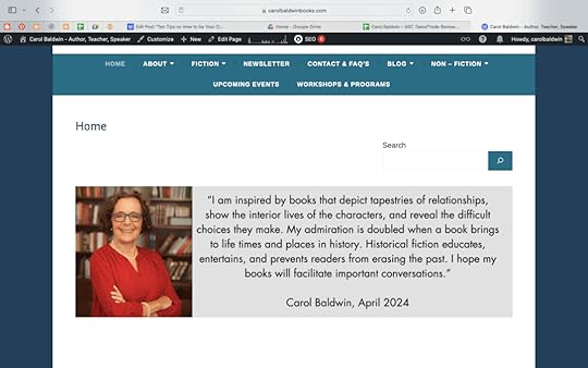 Tip #1: Look at other author’s websites. Take notes on what you like about them and what you don’t like. What colors and/or fonts appeal to you. If you are hiring someone to create your website this will help that person make a site that appeals to you. (Feel free to look at mine and tell me what you think works or doesn’t!)