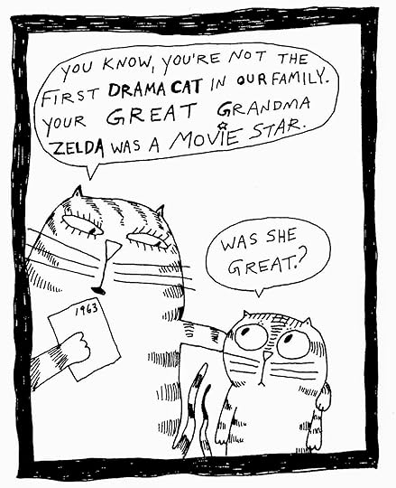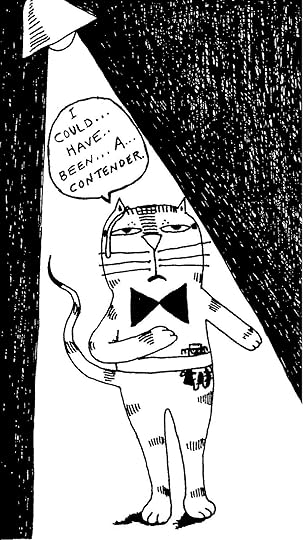 Despite his excellent audition in Nine Lives to Live, Mr. Puffball only receives a part as an extra. Nine Lives is “a classic western with handsome heroes, sinister villains, and old-fashioned rattlesnakes… [the hero] El Gato is after Billy the Kitten, who square-danced with El Gato’s one true love, Veronica, even though she prefers ballroom...They steal Billy the Kitten’s ten-gallon hat, which turns out to only hold five gallons. Laughing about their misadventure, El Gato and Veronica ride into the sunset where they hope to open a hotel with a water slide.” (p. 96)