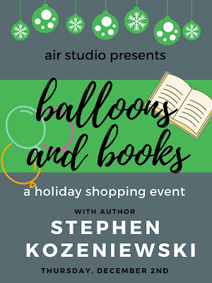 I am delighted to announce a previously unscheduled local engagement. I'll be appearing in the balloon shop I co-own (I know, fucking favoritism, right?) on December 2, from 4:00 - 7:00 pm EST. The address is: