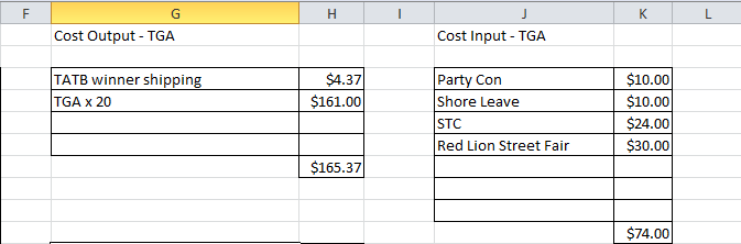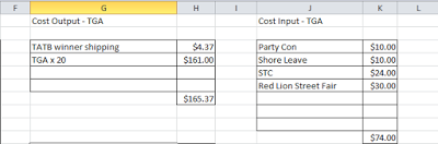 So, to close out the Making the Sausage portion of the post, if you do this for each of your novels, and use Excel's handy-dandy adding formulas, you can show how much you're spending and how much you're making for a year.
