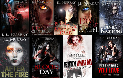 JLM: Thank you for having me. I'm J.L. Murray and I write dark fantasy, mostly, but most of it is so dark that it's considered horror. THE NIKI SLOBODIAN SERIES was my first toe in the water (BETWEEN THE DEVIL AND THE DEEP BLUE SEA, THE DEVIL IS A GENTLEMAN, BEFORE THE DEVIL KNOWS YOU'RE DEAD, THE DEVIL WAS AN ANGEL, and THE DEVIL'S BACKBONE.) My AFTER THE FIRE series has some true terrors in it, but it's more fantasy than horror. THE THIRTEEN SERIES (JENNY UNDEAD, EAT THE ONES YOU LOVE) is my first true horror series, set in the POV of the monsters (monsters have feelings, too!). Soon after, I published BLOOD DAY about a world run by Nosferatu-type vampires. I go back and forth between fantasy/sci-fi and horror, but mostly I squash them all up together.