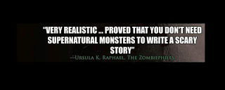 UKR: Real monsters. The ones you see on the news. People. People scare me more than zombies or werewolves or vampires or anything else horror authors can think up. Especially the people who appear completely normal and then they do something completely heinous and you never see it coming.