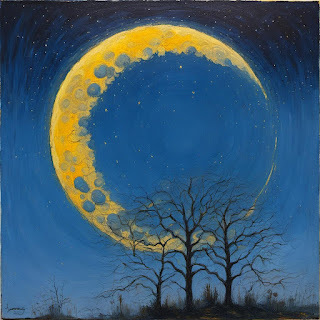 waxing gibbous moonhalo of golden yellow;lights my journey home